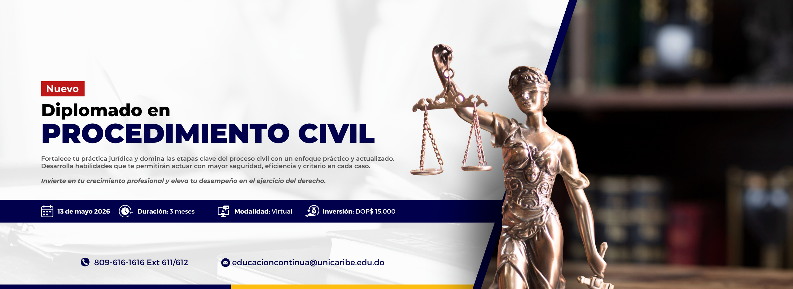 La Maestría en Derecho Procesal Civil, pretende dotar al profesional de los fines constitucionales legales de la administración de justicia y de las herramientas necesarias.